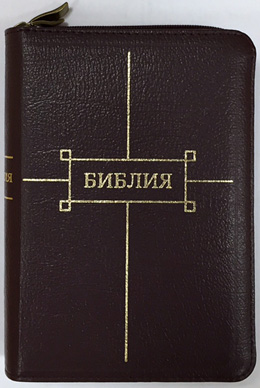 Библия: средний формат, гибкий кожаный переплет (вишневый) c двумя “молниями” и дополнительным отделом-органайзером, “золотой” обрез, индексы, две закладки