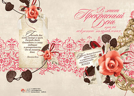 Внутри: Пусть Божие благоволение пребудет на тебе, и дела рук твоих будут благословенны.